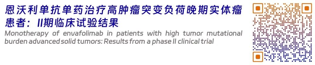該研究的第一部分確定了tTMB ≥ 13 mut/Mb作為高腫瘤突變負荷的閾值。初步療效結果顯示,tTMB ≥ 13 mut/Mb患者的 ORR 和 DOR(33.3% 和 20.2 個月)高於 tTMB < 13 mut/Mb 患者(4.3% 和 3.8 個月)。TMB 可作為預測既往接受過治療的晚期實體癌患者對恩沃利單抗療效的生物標誌物。