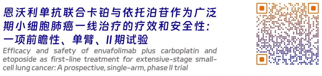 恩沃利單抗聯合卡鉑和依託泊苷對於 ES-SCLC 患者具有良好的臨床療效且安全性可控。31例患者中ORR為87.1%,DCR為100%(95% CI,88.8%-100%)。中位DoR為5.47個月,中位PFS為6.43個月,中位OS為20個月。 類型:壁報作者:中國人民解放軍總醫院焦順昌教授等摘要號:8090(展板號:211)